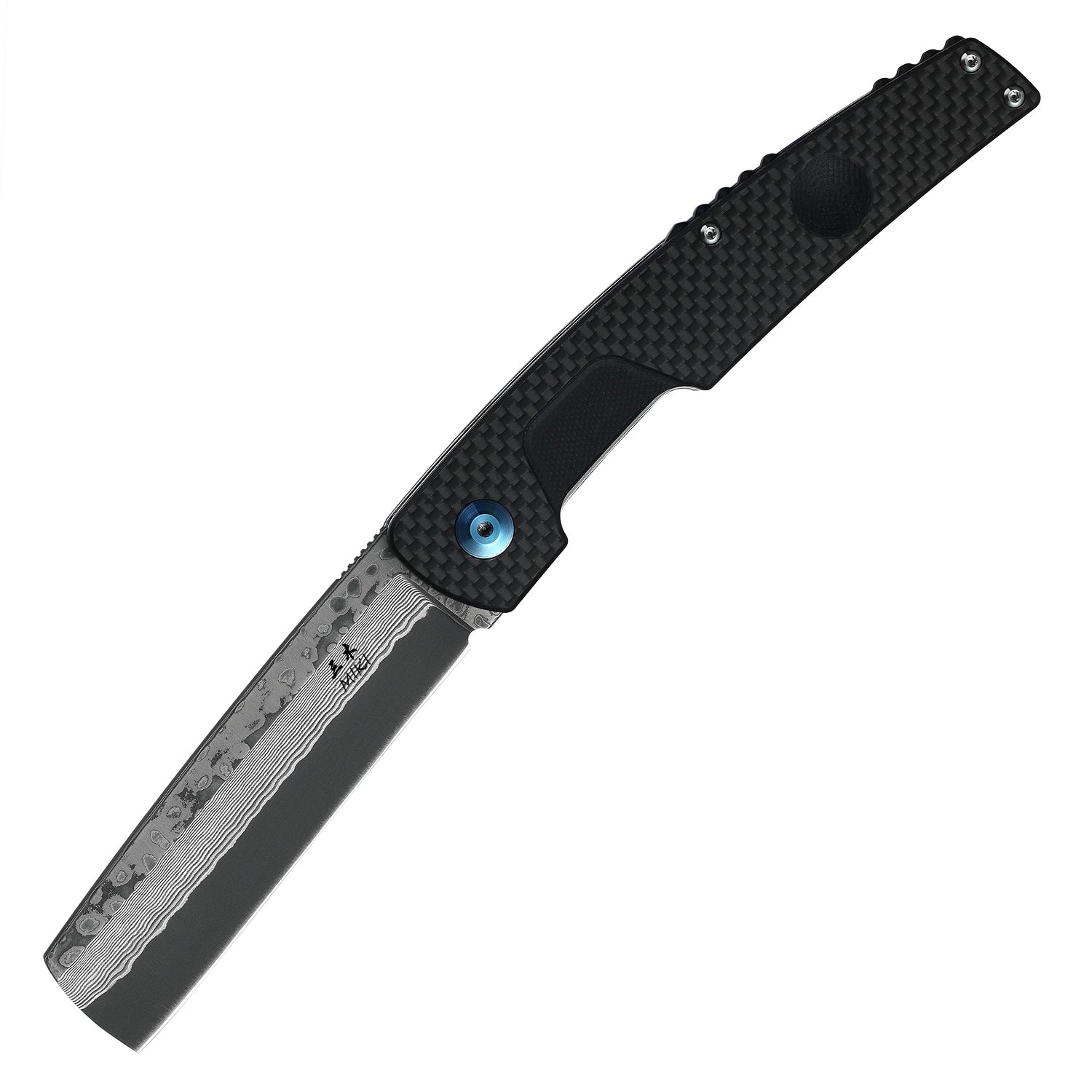 Miki Handmade Damascus Steel Razor,Camping Pocket Folding Japanese Knife,Titanium Handle & Carbon Fiber Handle,Frame Lock,Liner Lock,Cleaver Razor Blade,with Pocket Clip,Sharp Razor